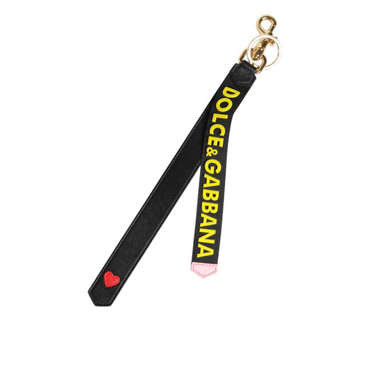 Dolce & Gabbana Black Yellow Logo Letaher Brass Holder Keychain Keyring