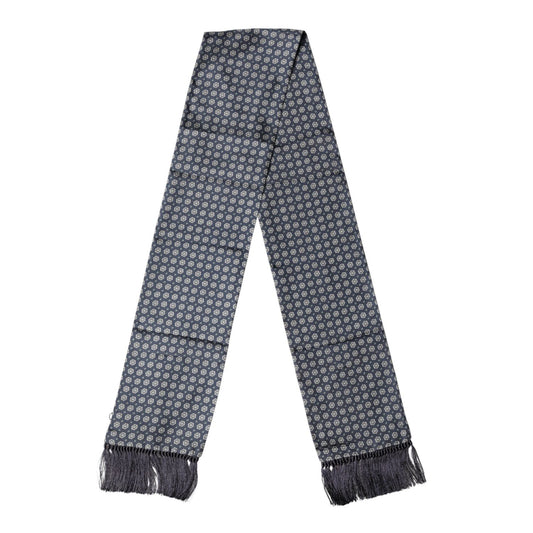 Dolce & Gabbana Blue Patterned Fringes Neck Foulard Scarf